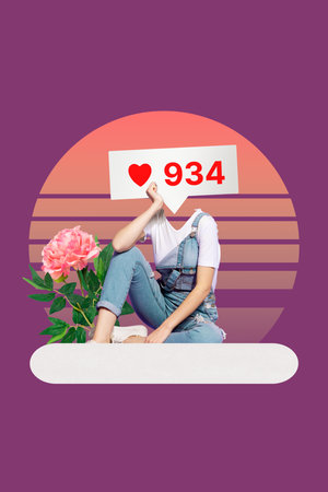 Collage 3d image of pinup pop retro sketch of sit flower summer heart influencer social media smm manager template metaphor psychedelic
