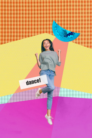 Image 3d zine vertical collage of happy hipster girl guy dance weekend disco ball vintage occasion enjoy event clubbing party