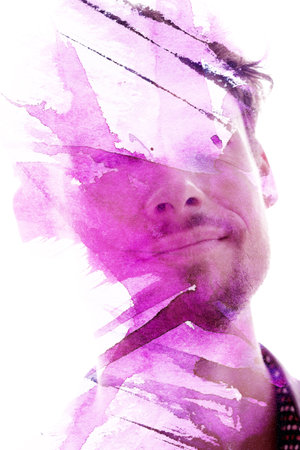Paintography. Colorful watercolor was merged with a portrait