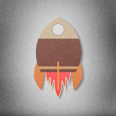Space rocket flying in space cut paper craft on paper background