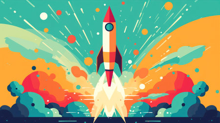 Rocket launch start up success business startup, drawing.