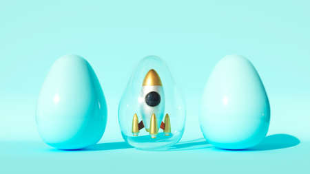 Rocket start 3D illustration business startup successful leadership ideas concept. Concept of business development, startup, success