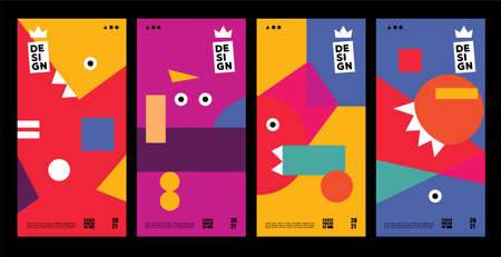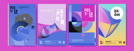 Abstract creative poster collection with colorful geometric shapes and graphics on white backdrop. Set of bright colorful artistic banners with place for text. Youth style backgrounds. Vector eps 10