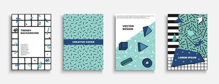 Set of vector color contemporary covers, templates, posters, placards, brochures, banners, flyers and etc. Art fashion backgrounds. Abstract trendy design 80-90s.