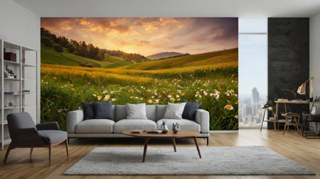 Interior of a modern living room with a sofa and a picture in a frame