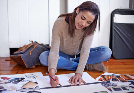 Working to develop her portfolio. A young woman working on her portfolio at home.
