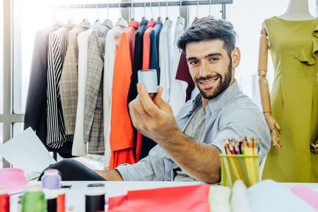 Designer are thinking and designing clothes for customers order items at the designer desk in the studio. Clothes designers are working in the office. Startup designer concept.