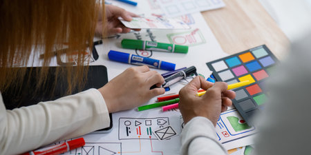 Cropped view of UI designer planing the UX application development with team members in modern workplace