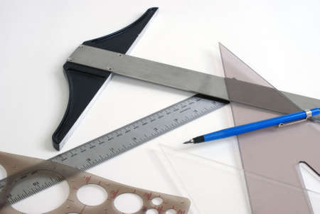 Technical drawing on graph paper at school, college or in the design office - useful equipment.