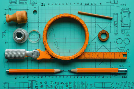 Building materials, tools, magnifier, ruler, desktop, ruler.