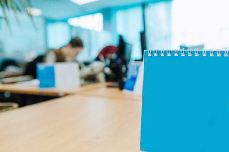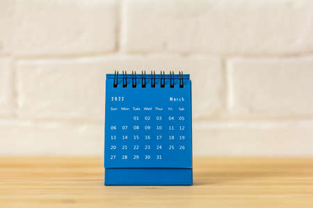 close up of calendar on the white and blue table, planning for business meeting or travel planning concept