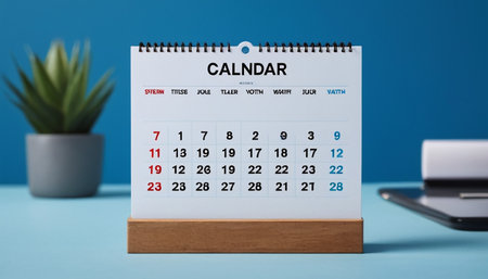 close up of calendar on the blue table background, planning for business meeting or travel planning concept