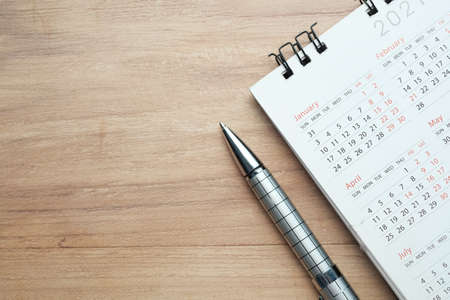 Desktop Calendar 2021 place on wooden office desk, for Planner to plan appointment each date, month and year on table. Calendar Background Concept.