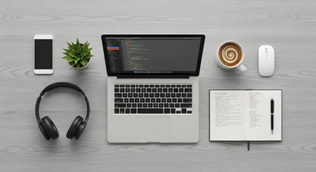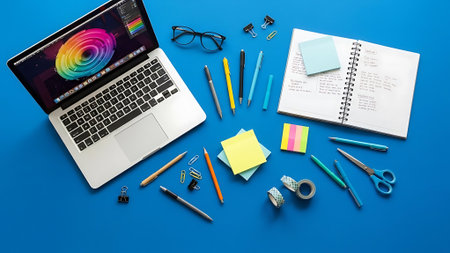 A modern and organized workspace setup with essential tools for creativity and productivity