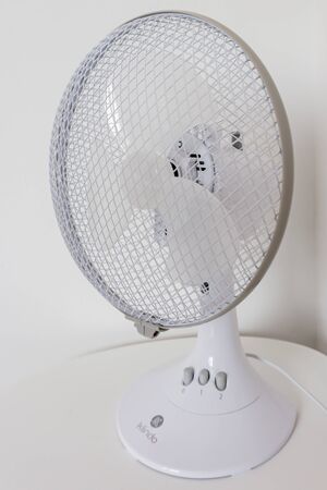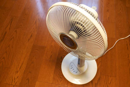 Samut Prakan, Thailand - June 4, 2022 : Hatari electric Table fan 16 inches white color use at new home