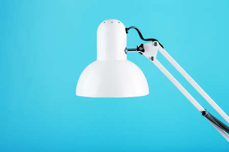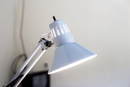 White desk lamp close up over light background