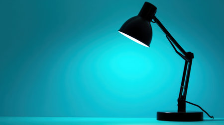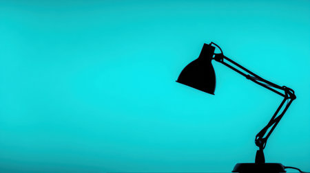 A striking silhouette of a black lamp against a vibrant turquoise background, perfect for showcasing modern workspace aesthetics and creative design.
