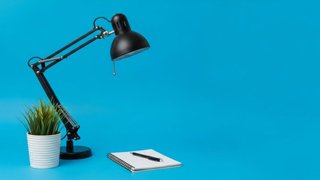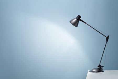 Office table lamp on blue background with space for text and idea concept