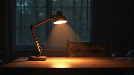 Cinematic minimalist desk lamp with spotlight for deep work concept