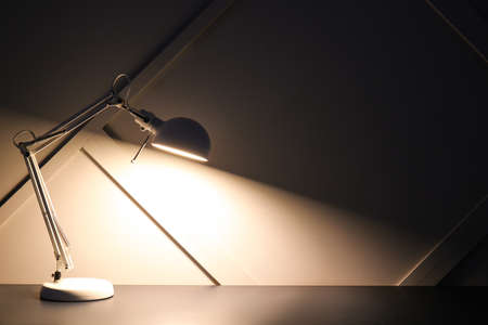 Desk lamp on table close up