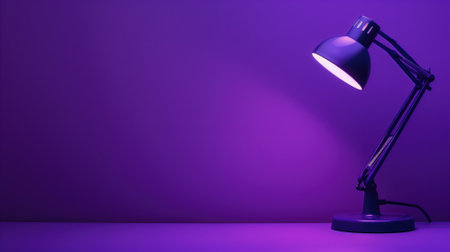 A solitary desk lamp illuminating a vibrant purple background, creating an atmosphere of focus and creativity