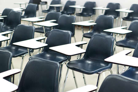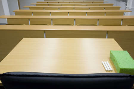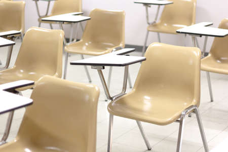 University lecture chairs and tables in classroom