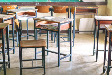 Vintage tone image of empty classroom and row of chair after finish class and end of semester.