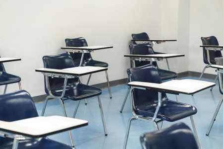 Classroom with empty desks, concept social distancing