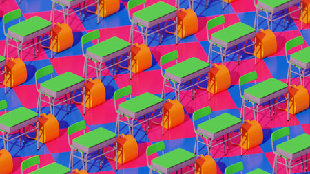 render of school benches and chairs