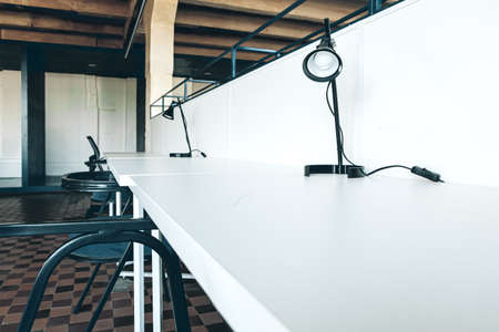 crafty room. artful studio workshop. empty painting class of art school. creative painter workspace.