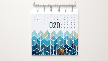 Efficiently Organize Your Work and Life: Close-Up Top View of White Calendar 2020 for Meeting Scheduling and Timetable Management on Teal Background