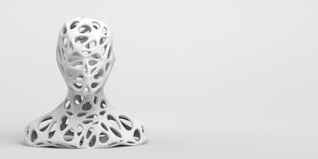 Abstract wallpaper of Michelangelos head with a golden ribbon and light background. 3d rendering.