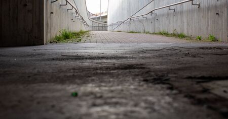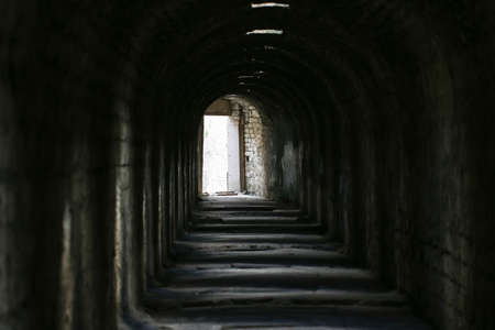 old poorly lit underpass made of brick Moscow Russia march 15, 2020.