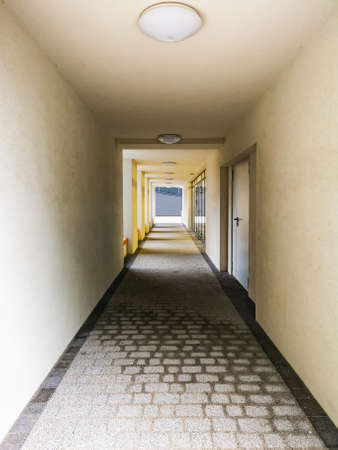 Empty corridor in a subway station, shot from the perspective of the camera, the corridor.