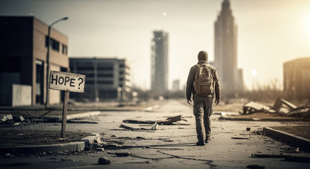 A post-apocalyptic cityscape, Ai generated image