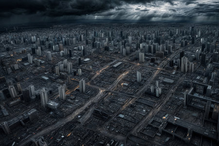 Aerial photography of a modern city after the apocalypse