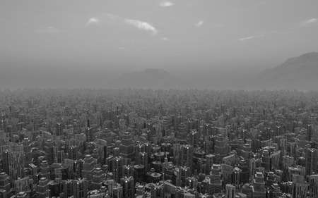 aerial view a future city 3d rendering