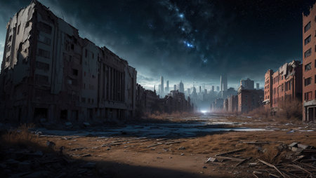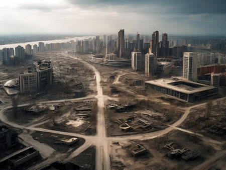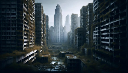 A post-apocalyptic cityscape, Ai generated image