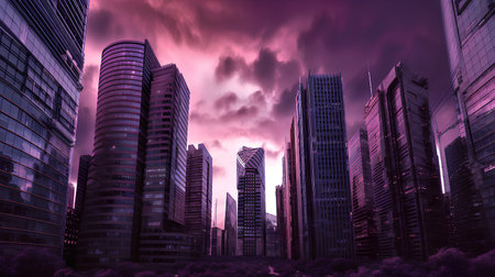 Glowing cityscape with skyscrapers and modern architecture illuminated at dusk generated by artificial intelligence