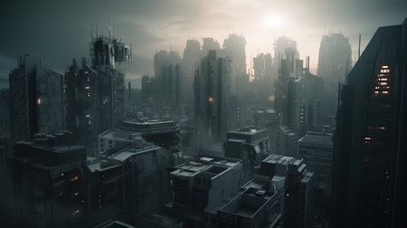 A dark and moody city skyline with dramatic lighting and shadows AI generated