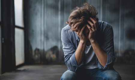Man gripping his head in desperation, symbolising the catastrophic effects of mental illnesses like anxiety and depression