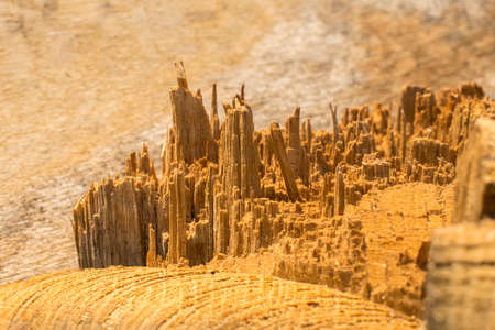 A selective focus of a broken wood plank on a sunny condition that looks like skyscrapers on a desert.