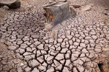 Land with Dry and Cracked Ground, with a old dry log. Background Texture.