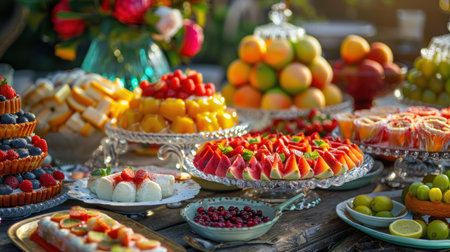 Gourmet Dessert Delicacies. Decadent Spread of Exquisite Sweets.