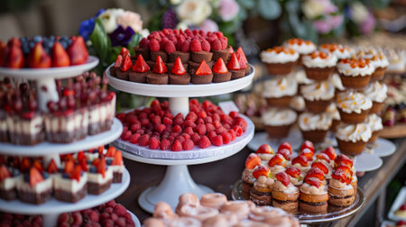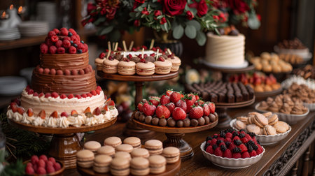 the sweetness of indulgence. decadent desserts arranged on a table.