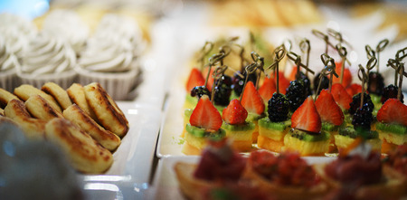 Catering buffet with a variety of food snacks and appetizers