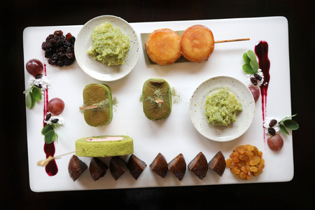 Japanese dessert mix on wood background