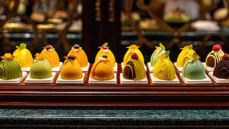 A stunning assortment of gourmet desserts showcasing vibrant colors and elegant presentation. Ideal for gourmet food lovers and culinary photography.