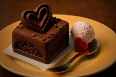 heart-shaped brownie with miniature heart on top made from chocolate, created with generative ai