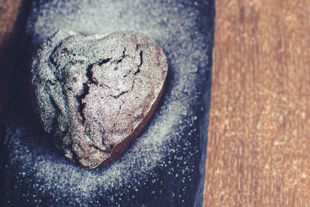 heart-shaped brownie surrounded by heart-shaped sprinkle of sugar, created with generative ai
